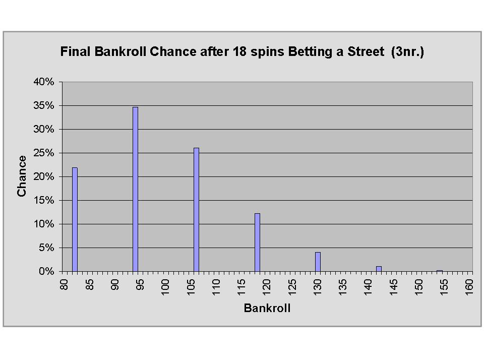 Below the chance graph for a Street bet is plotted after 18 spins.