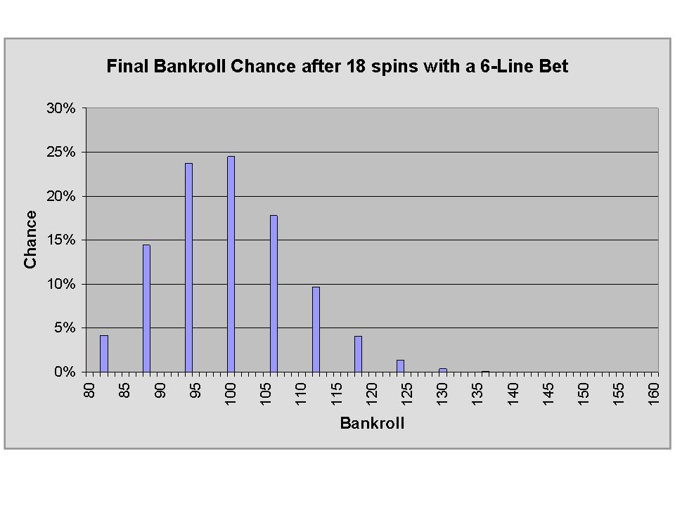 Below the chance graph for a Double Street bet is plotted after 18 spins.