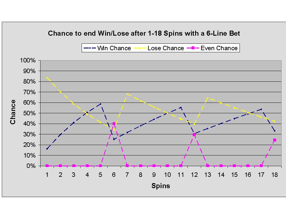 After 6 spins, more than 1 win is needed to come out winning.