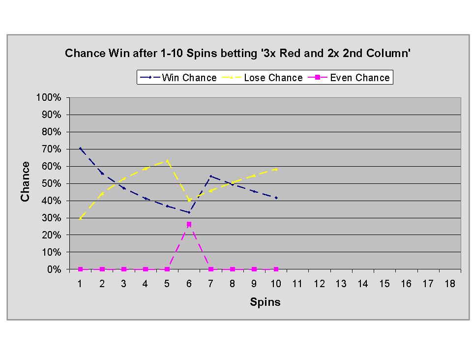 However after multiple roulette spins the chance to win drops, and overall the strategy does not make it above 70% win chance to start to make it interesting.