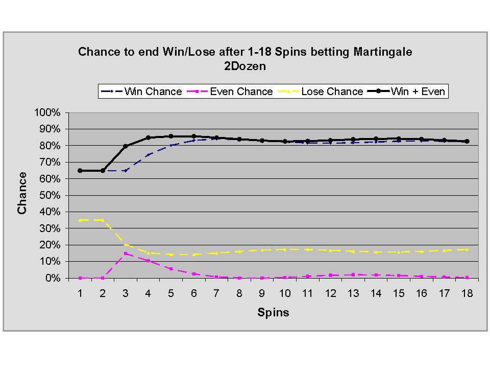 to 47% on the 19th spin. So when applying 'Martingale Moneymanagement' we can keep the win chance at 82% on the 18th spin!.